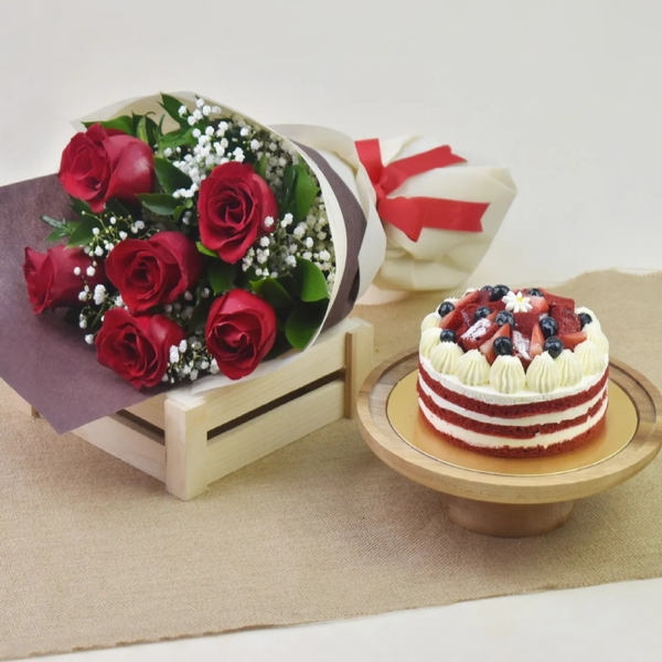 Send Red Roses with Red Velvet Cake to INDIA