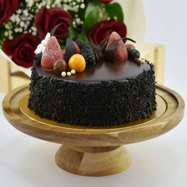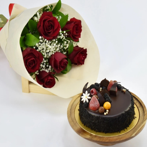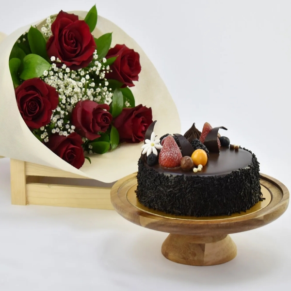 Send Roses & Fudge Cake to INDIA