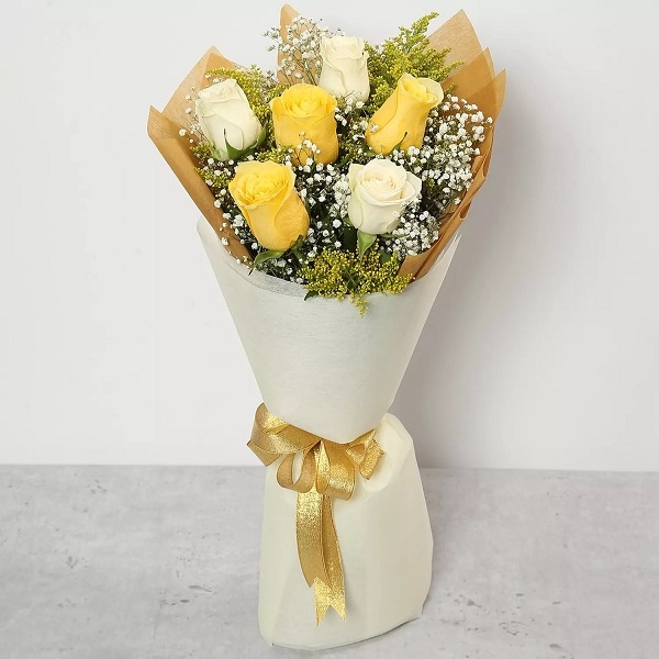 Send Yellow & White Roses Bouquet to UAE